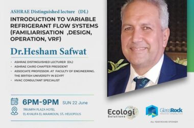 ASHRAE Cairo Chapter is delighted to announce “Introduction to Variable Refrigerant Flow Systems” by Dr. Hesham Safwat next Sunday 22nd June at 6 PM in Triumph Plaza Hotel. Grab the […]